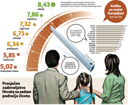 Gledajući statistički, Hrvati su naoko sretan narod. Vlastitim životom nezadovoljan je tek svaki deseti Hrvat, a baš nesretnima ih se smatra 6,5 posto. Obiteljskim životom zadovoljno je više od polovice stanovništva, a društvenim oko 40 posto. U istraživanju sreće koje od 1960. provodi Ruut Veenhoven Hrvati se mogu pohvaliti da od 73 godine prosječnog trajanja života, čak 43 godine žive sretno. No što je s preostalih 30 godina?