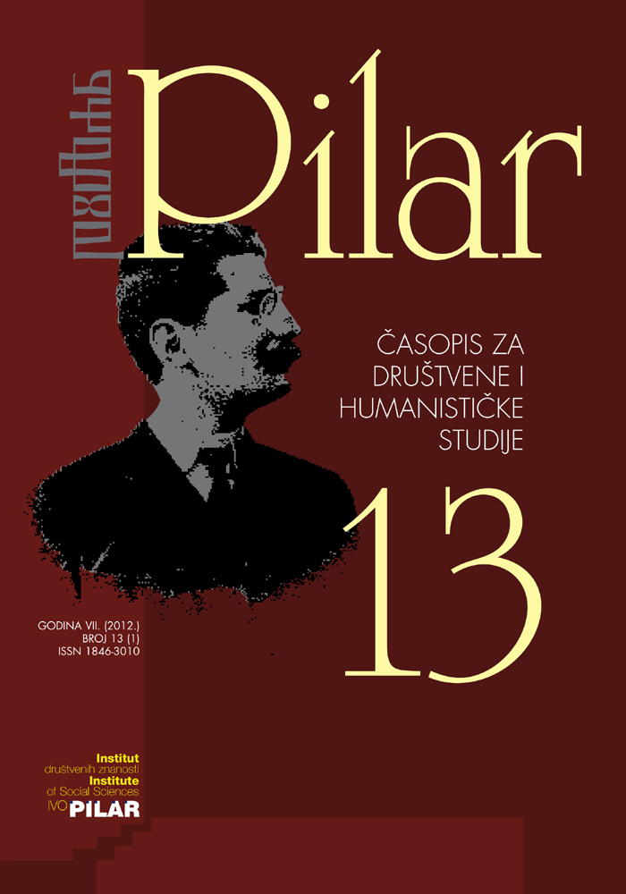 PILAR – Časopis za društvene i humanističke studije Godište VII. (2012.), broj 1 (13) Glavni urednik: Zlatko MATIJEVIĆ Zamjenik glavnog urednika: Zlatko HASANBEGOVIĆ Tajnica uredništva: Ivana ŽEBEC ŠILJ – O časopisu – Svi brojevi Časopisa Pilar – Sadržaj br. 13/2012. |