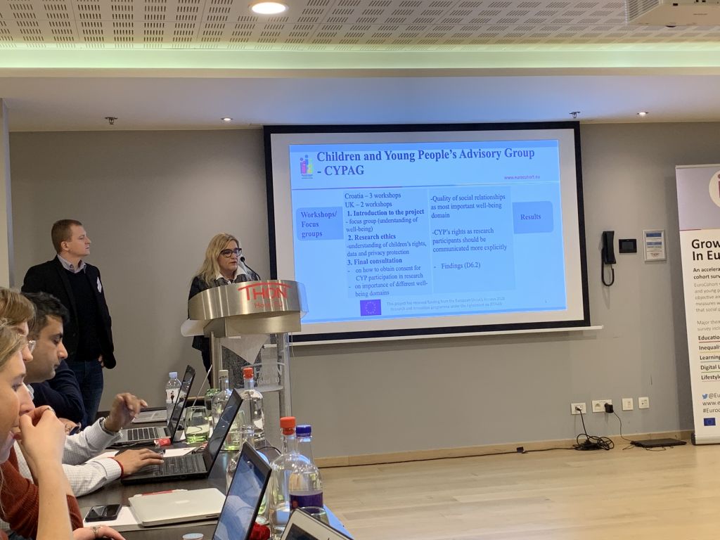 Na završnoj konferenciji projekta EuroCohort: Odrastati u Europi (Growing Up in Europe) donositeljima javnih politika na europskoj i nacionalnim razinama predstavljene su pripreme obavljene za provedbu europskoga longitudinalnog istraživanja Growing Up in Europe. Plenarni predavači Dominic Richardson (UNICEF), Jana Hainsworth (Eurochild) i Dominik Sobczak (ESFRI, Europska komisija) istaknuli su ograničenja postojećih podataka o dobrobiti djece i mladih, važnost kvalitetnih i longitudinalnih podataka za utemeljene javne politike, potrebu za longitudinalnim krosnacionalnim europskim podacima o dobrobiti djece i mladih te mogućnostima da istraživanje Odrastati u Europi postane jedna od europskih istraživačkih infrastruktura.