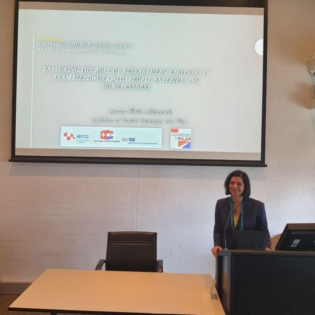 Dr. sc. Lynette Šikić Mićanović sudjelovala je na panelu: Etnografija sa suzama: istraživanje uloge emocija istraživača u antropološkoj praksi, koji je dio međunarodne konferencije Australskoga antropološkog društva (AAS) “Life Support”, održane u Melbourneu od 23. do 26. studenog 2022. Antropolozi su se u izlaganjima bavili afektom i emocijama kao oruđima za antropologiju i istraživali kako se disciplina može bolje pozabaviti traumom u terenskom radu, poštovati empatiju kao središnju etnografsku praksu i predstaviti emocije u etnografiji