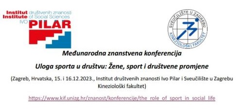 Institut društvenih znanosti Ivo Pilar i Sveučilište u Zagrebu, Kineziološki fakultet pozivaju vas na međunarodnu znanstvenu konferenciju: Uloga sporta u društvu: Žene, sport i društvene promjene koja će se održati u Zagrebu 15. i 16. 12. 2023.