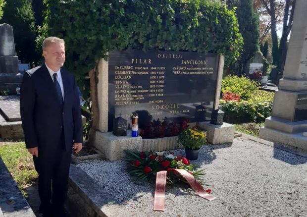 U povodu 90. obljetnice tragične smrti dr. Ive Pilara, ravnatelj Instituta društvenih znanosti Ivo Pilar prof. dr. sc. Željko Holjevac položio je vijenac na Pilarov grob na Mirogoju