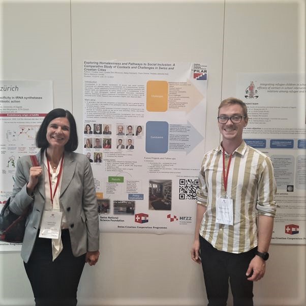 Dr. Lynette Šikić Mićanović principal investigator (PI) and Matija Krizmanić, professional associate presented a poster with the results of the project Exploring Homelessness and Pathways to Social Inclusion: A Comparative study of Contexts and Challenges in Swiss and Croatian Cities (No. IZHRZO_180631/1), which was carried out as part of the CSRP program.