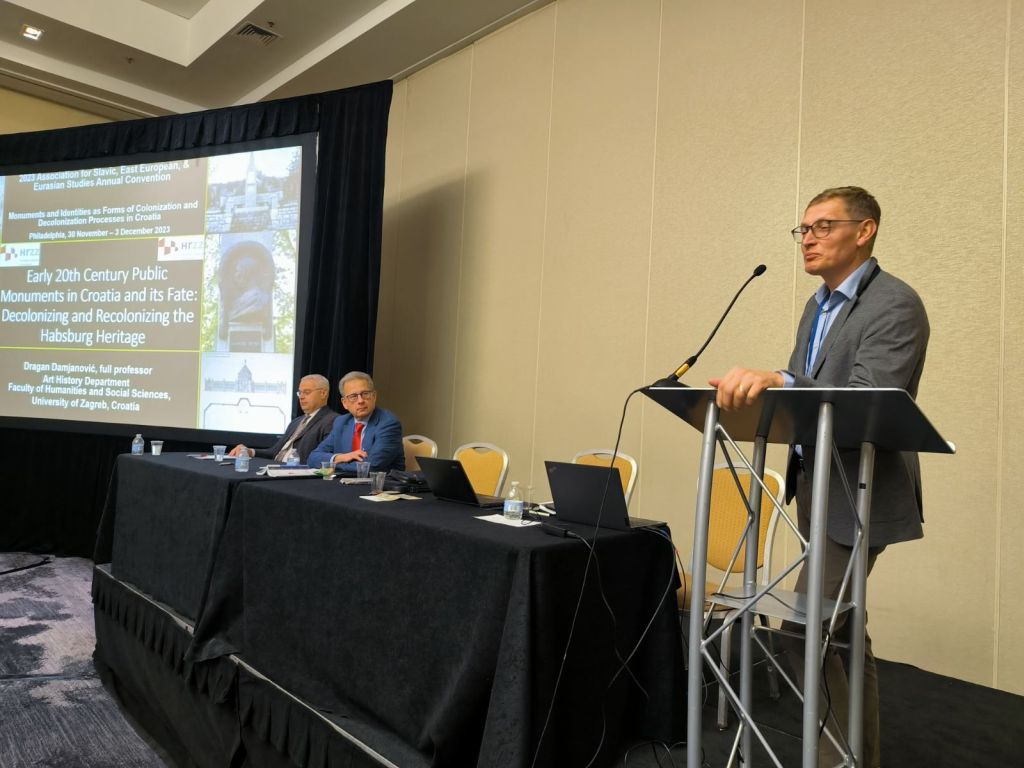 U Philadelphiji se od 30. studenog do 3. prosinca 2023. održavala međunarodna godišnja konferencija ASEEES 2023 (Association for Slavic, East European & Eurasian Studies Annual Convention), Decolonization. Među izlagačima bio je i član projekta HRZZ-a Prvi svjetski rat u kulturi sjećanja. Zaboravljena baština dr. sc. Dragan Damjanović koji je u sklopu obaveza održao izlaganje “Early 20th Century Public Monuments in Croatia and its Fate: Decolonizing and Recolonizing the Habsburg Heritage”