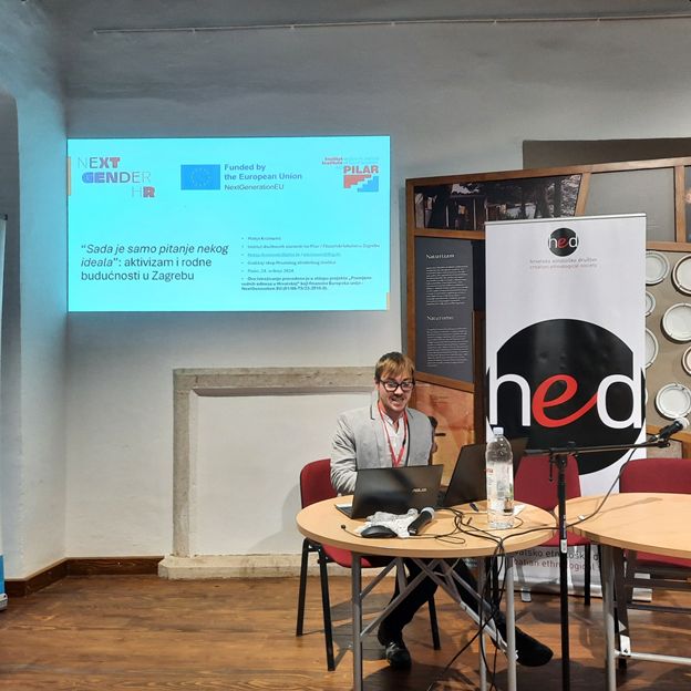 Asistent Instituta Pilar Matija Krizmanić na Godišnjem skupu Hrvatskog etnološkog društva u Pazinu održao je izlaganje pod naslovom „Sada je samo pitanje nekog ideala“: aktivizam i rodne budućnosti u Zagrebu. Rad je predstavljen kao dio doktorske disertacije u sklopu projekta „Promjene rodnih odnosa u Hrvatskoj“, NextGenderHR, (01/08-73/23-2519-9)