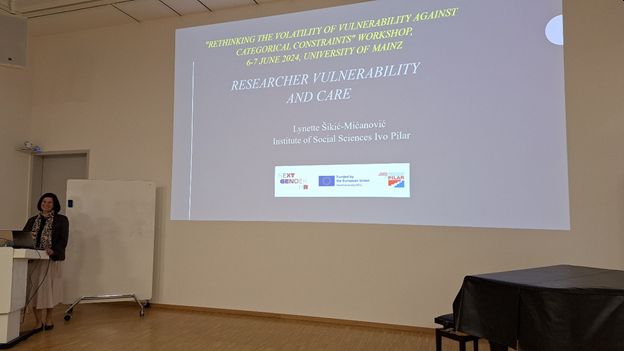 Dr. Lynette Šikić Mićanović participated in an international workshop entitled “Rethinking the Volatility of Vulnerability against Categorical Constraints” at the University of Mainz, Germany from 6-7 June 2024. This workshop brought together leading scholars from anthropology, history, sociology and theatre studies who discussed how and in which forms vulnerability comes into being, and how it is stabilised in various research fields