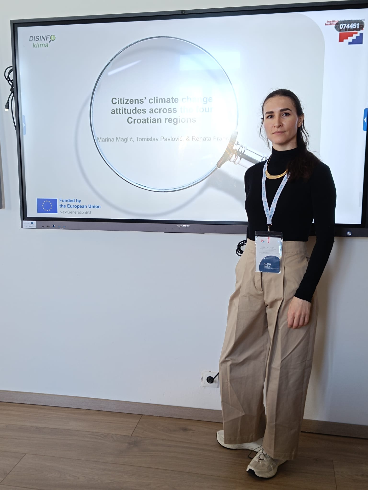 Na međunarodnoj multidisciplinarnoj konferenciji Mediterranean Islands Conference (MIC) održanoj po peti put u Visu dr. sc. Marina Maglić prezentirala je rad Citizens’ climate change attitudes across the four Croatian regions. Analizirajući podatke građana 22 europske zemlje iz desetog vala Europskog društvenog istraživanja (ESS), Marina Maglić, Tomislav Pavlović i Renata Franc utvrdili su da hrvatski građani spadaju među najzabrinutije u Europi kada je riječ o klimatskim promjenama, te se smještaju u gornju trećinu s obzirom na važnost koju pridaju zaštiti prirode i okoliša. Po pitanju uzroka klimatskih promjena (ljudska aktivnost naspram prirodnih procesa) građani Hrvatske se nalaze na sredini ljestvice uzimajući u obzir 22 obuhvaćene zemlje. Međutim, kad je riječ o percepciji osobne odgovornosti u borbi protiv klimatskih promjena, građani Hrvatske nalaze se u donjoj trećini zemalja.