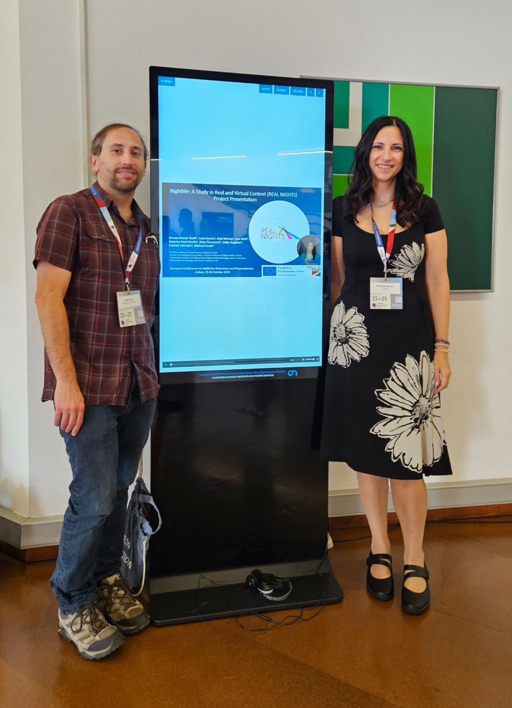 Međunarodna konferencija European Conference on Addictive Behaviours and Dependencies (Lisbon Addictions 2024) održana je od 23. do 25. listopada 2024. u Lisabonu, Portugal, u organizaciji portugalskog Institute on Addictive Behaviours and Dependencies, European Union Drugs Agency (EUDA), časopisa Addiction (Society for the Study of Addiction) i International Society of Addiction Journal Editors (ISAJE). Projekt Istraživanje noćnog života: realno i virtualno okruženje (REAL NIGHTS) predstavila je voditeljica projekta dr. sc. Renata Glavak Tkalić. Na konferenciji je sudjelovao i suradnik na projektu, prof. dr. sc. Michael Vuolo s Ohio State University, SAD