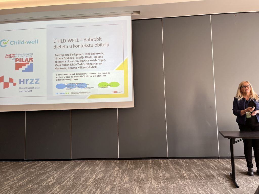 Dr. sc. Andreja Brajša-Žganec i dr. sc. Ljiljana Kaliterna Lipovčan sudjelovale su na 31. godišnjoj konferenciji hrvatskih psihologa, koja se pod naslovom „Suvremeni izazovi mentalnog zdravlja u različitim radnim okruženjima“ održavala 6.-9. studenog 2024. u Opatiji. Na konferenciji su u okviru Okruglog stola „Dobrobit djeteta u kontekstu obitelji – implementacija rezultata istraživanja projekta CHILD-WELL“ prezentirale rezultate istoimenog projekta koji financira Hrvatska zaklada za znanost u razdoblju 2020.-2024.
