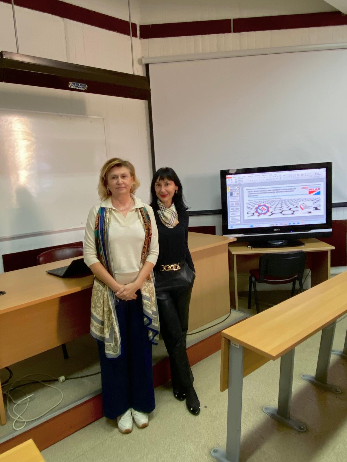 Dr. sc. Rebeka Mesarić Žabčić i dr. sc. Sandra Cvikić održale su na poziv Pravnog fakulteta Justinijan Prvi Sveučilišta “Sv. Kiril i Metodij” u Skopju, Republika Sjeverna Makedonija 27. studenoga 2024. predavanje u sklopu dva znanstvenoistraživačka projekta Instituta Pilar. Na poziv prodekanice prof. dr. sc. Esin Kranli Bajram i prof. dr. sc. Goce Naumovskog znanstvenice Instituta su održale dva predavanje pod nazivom Multikulturalizam/interkulturalizam i Hrvati u suvremenom makedonskom društvu i Pokazatelji suvremenih migracijskih trendova i globalizacijski procesi
