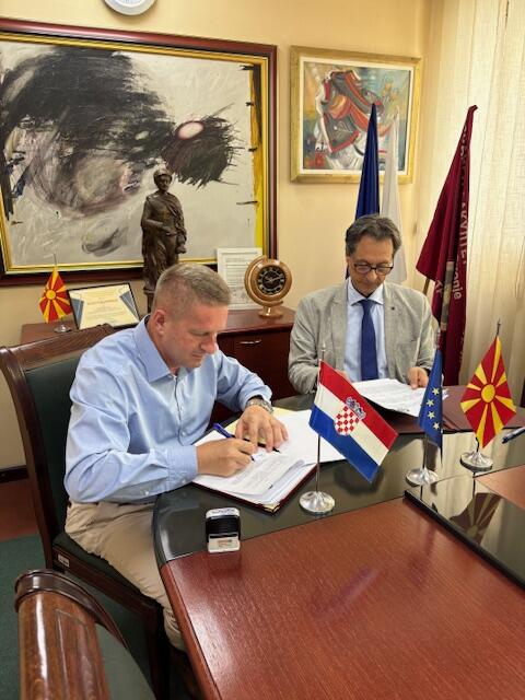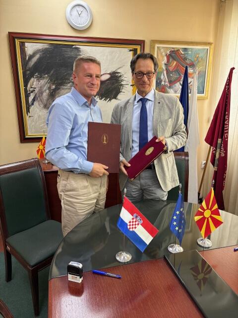 Dekan Pravnog fakulteta Justinijan Prvi Univerziteta Sv. Kiril i Metod iz Skopja dr. sc. Saso Geogrievski i ravnatelj Instituta Pilar prof. dr. sc. Željko Holjevac potpisali su 11. srpnja 2025. u Skopju sporazum o suradnji između dviju institucija
