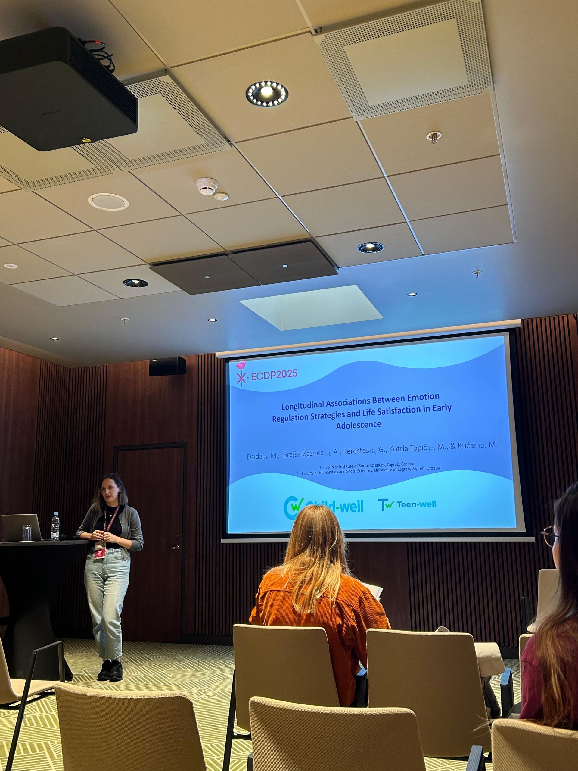 Dr. sc. Marija Džida održala je usmeno izlaganje na temu „Longitudinal Associations Between Emotion Regulation Strategies and Life Satisfaction in Early Adolescence“ (Longitudinalne povezanosti između strategija regulacije emocija i zadovoljstva životom u ranoj adolescenciji) u sklopu sekcije usmjerene na dječju prilagodbu u kompleksnim kontekstima. Suautorice izlaganja bile su dr. sc. Andreja Brajša-Žganec, dr. sc. Gordana Keresteš, dr. sc. Marina Kotrla Topić i Maja Kućar.