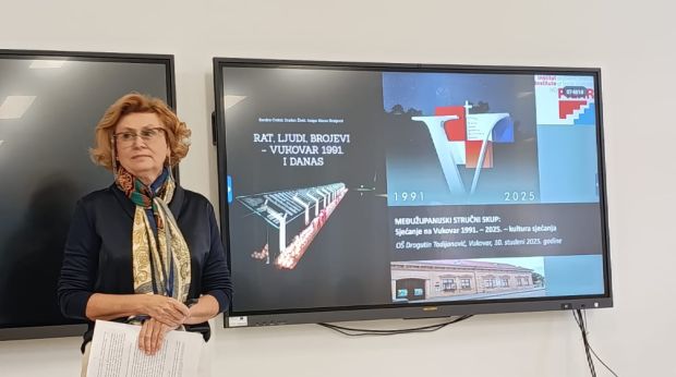 Dr. sc. Sandra Cvikić održala predavanje „Hrvatski proces tranzicijske pravde i kultura sjećanja – primjer Vukovara“; Vukovar, 10. 11. 2025.