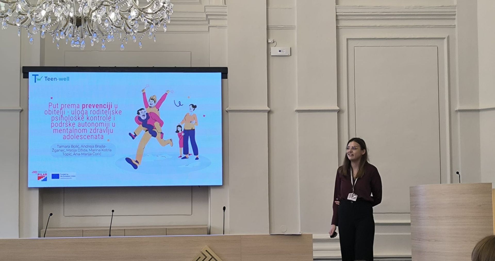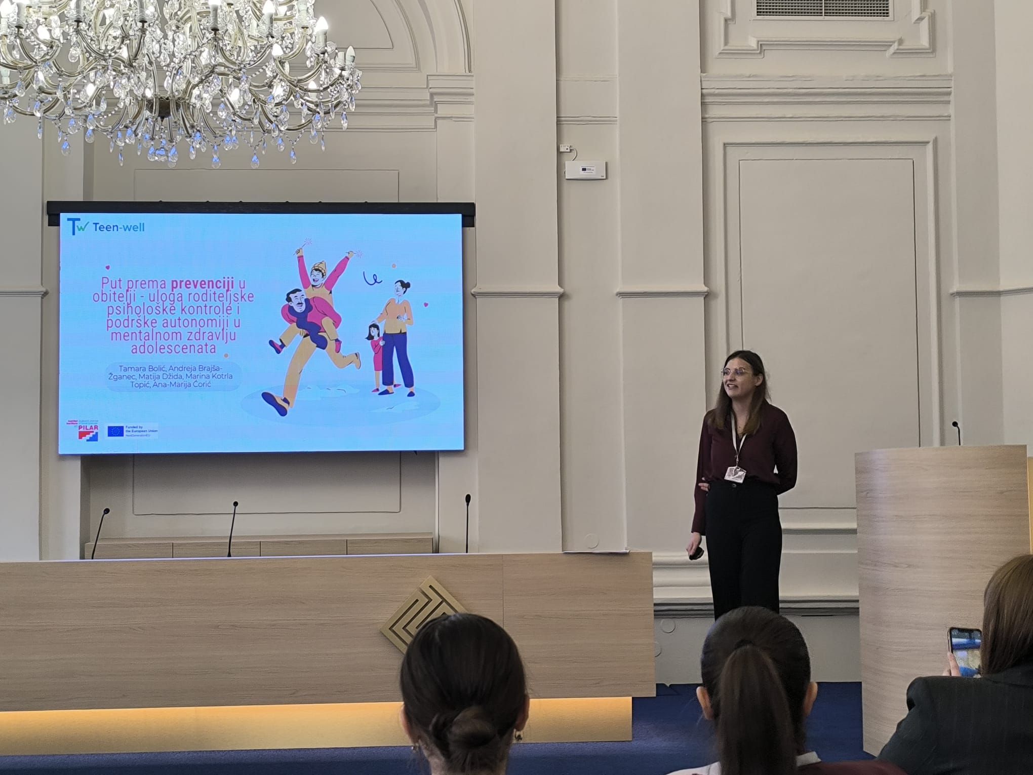 U izlaganju su predstavljeni rezultati pilot-istraživanja projekta TEEN-WELL. Prezentirano istraživanje upućuje na važnost preventivnih aktivnosti koje osnažuju roditelje u davanju podrške adolescentima koja će poduprijeti njihov razvoj autonomije i stvaranje podražavajućih obiteljskih odnosa s ciljem poboljšanja mentalnog zdravlja adolescenata.